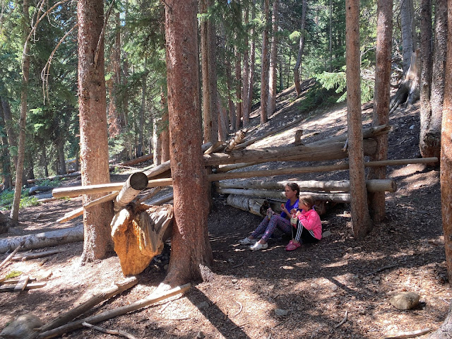 Carter hiked up on his own to Sawmill Reservoir, partially up Peak 9 to fish. Later Blake and I hiked up to join him while the girls spent a couple of hours in the forest area outside the condo "building a hideout."